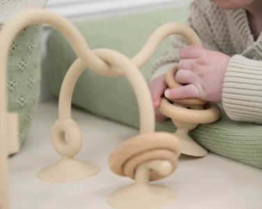 Hochet anneau bois poire Trois petits lapins