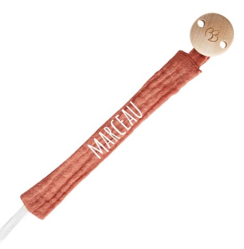 Attache-sucette gaze de coton Marsala personnalisé